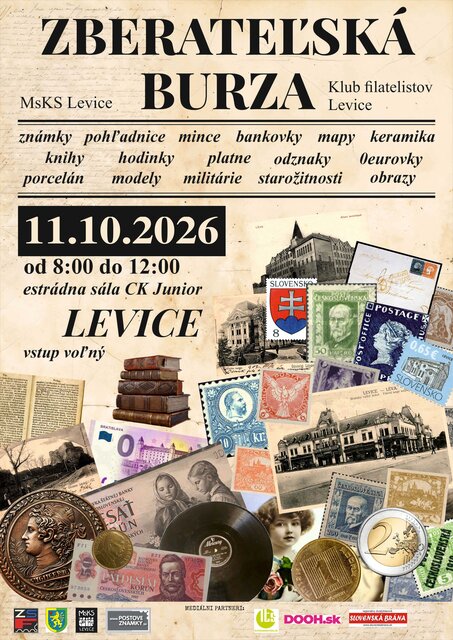 Čakajú vás známky, mince, bankovky, pohľadnice, knihy, hodinky, porcelán, militárie, starožitnosti, obrazy a mnoho ďalších pokladov.
